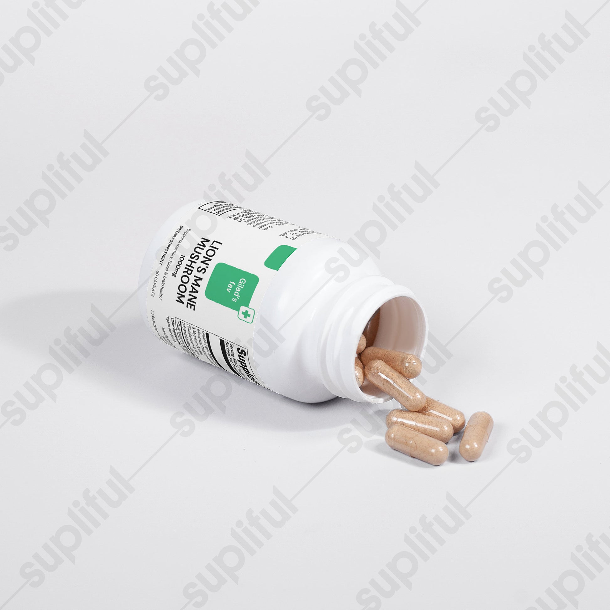 Ingredients: Organic Lion’s Mane (Hericum erinaceus) Mushroom Fruiting Body & Mycelium Powder (Standardized to 40% polysaccharides [400mg]), Organic capsule (pullulan, water), organic pea starch.